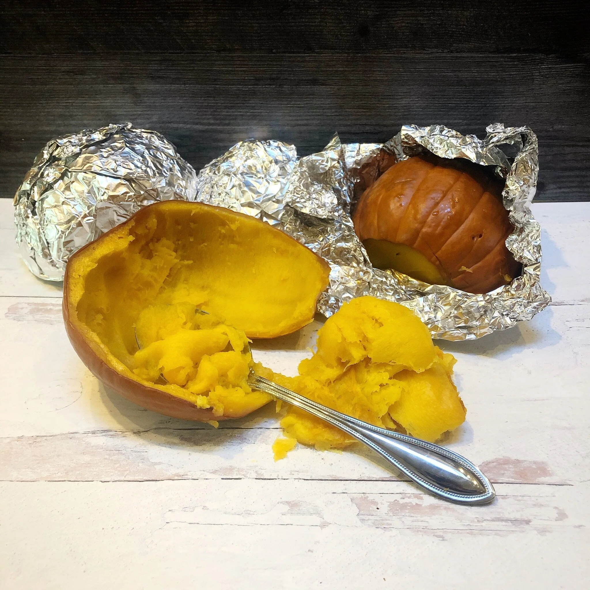 Pro Tip: Let the pumpkins cool before unwrapping! Not only to avoid steam burns, but also to let the steam reabsorb into the pumpkin for maximum moisture.