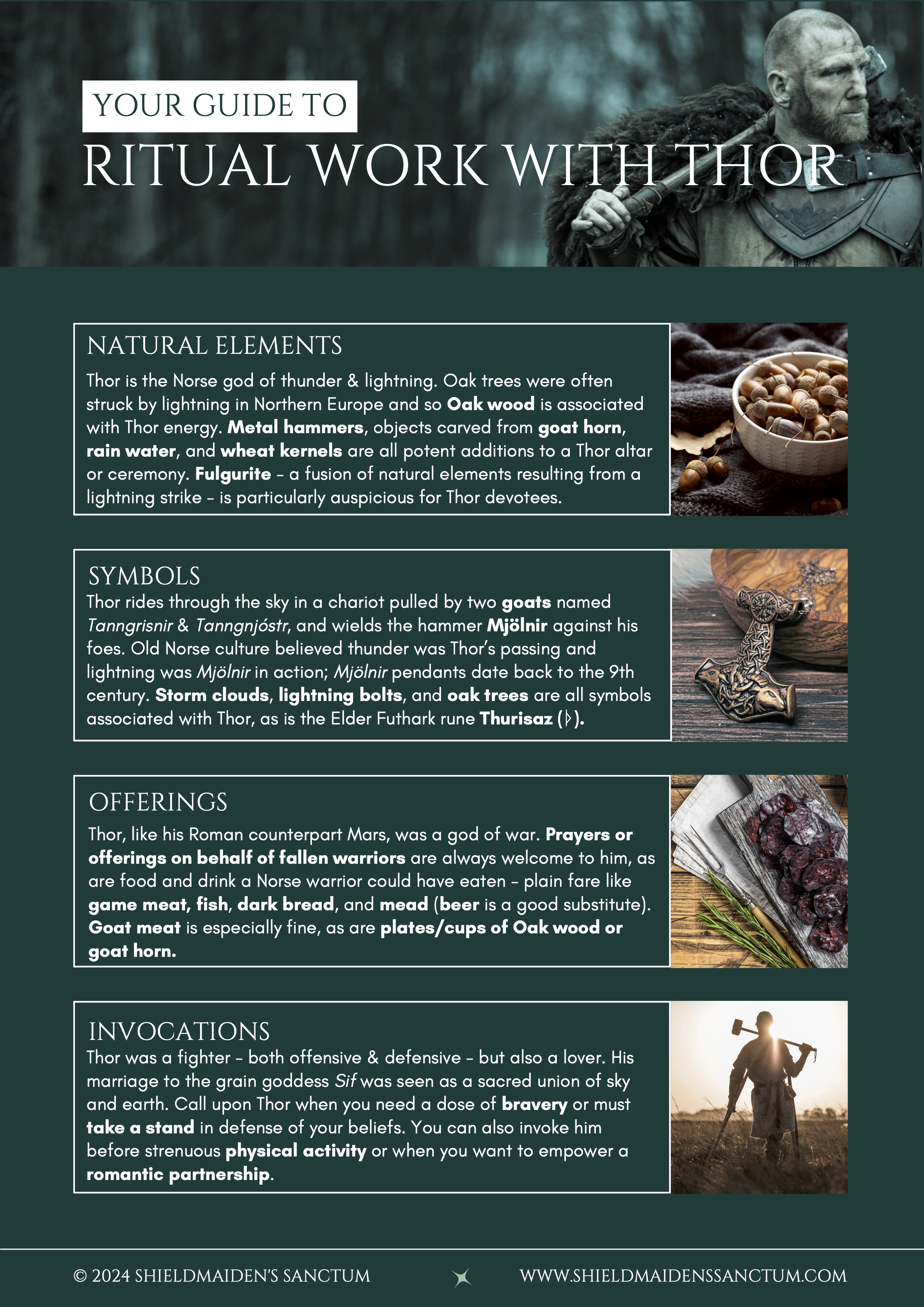 This one-page guide to Ritual Work With Thor was created to help you connect with his energy. It includes: