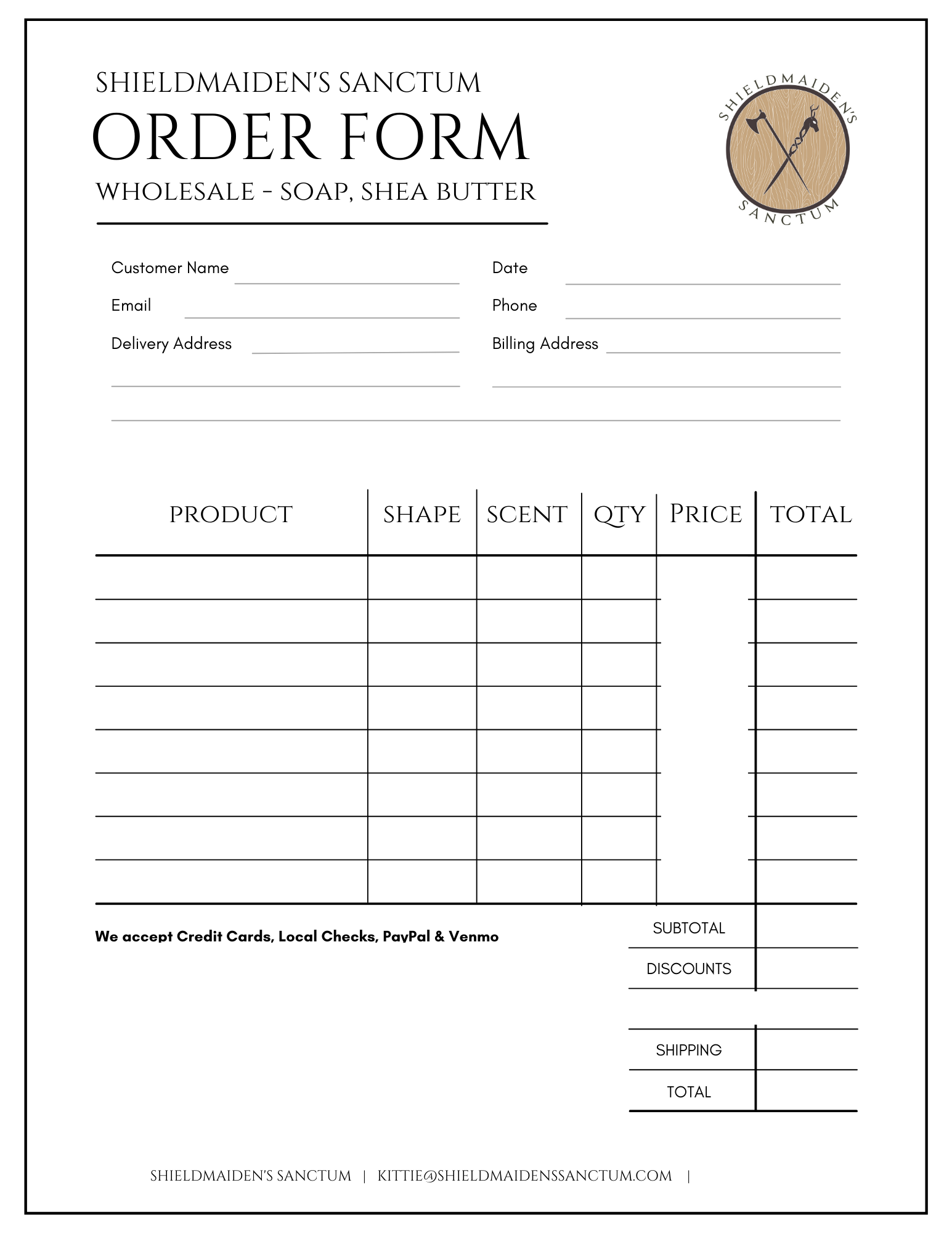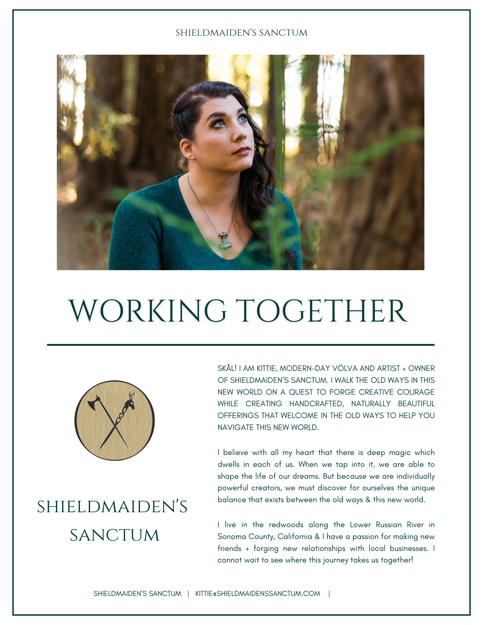 Thank you for your interest in opening a wholesale account with Shieldmaiden’s Sanctum! As an independent artist and small business owner, I take great pride in my creations, and I love working with other small businesses to ignite creative courage in the world.